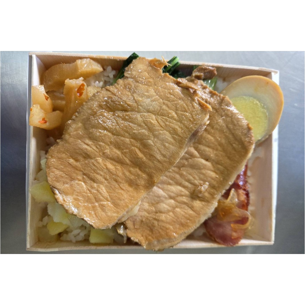 用中央畜產.家鄉豬透過產銷履歷讓客人食的安心.選用大里肌條經過小火烹煮.做成軟嫩的肉片